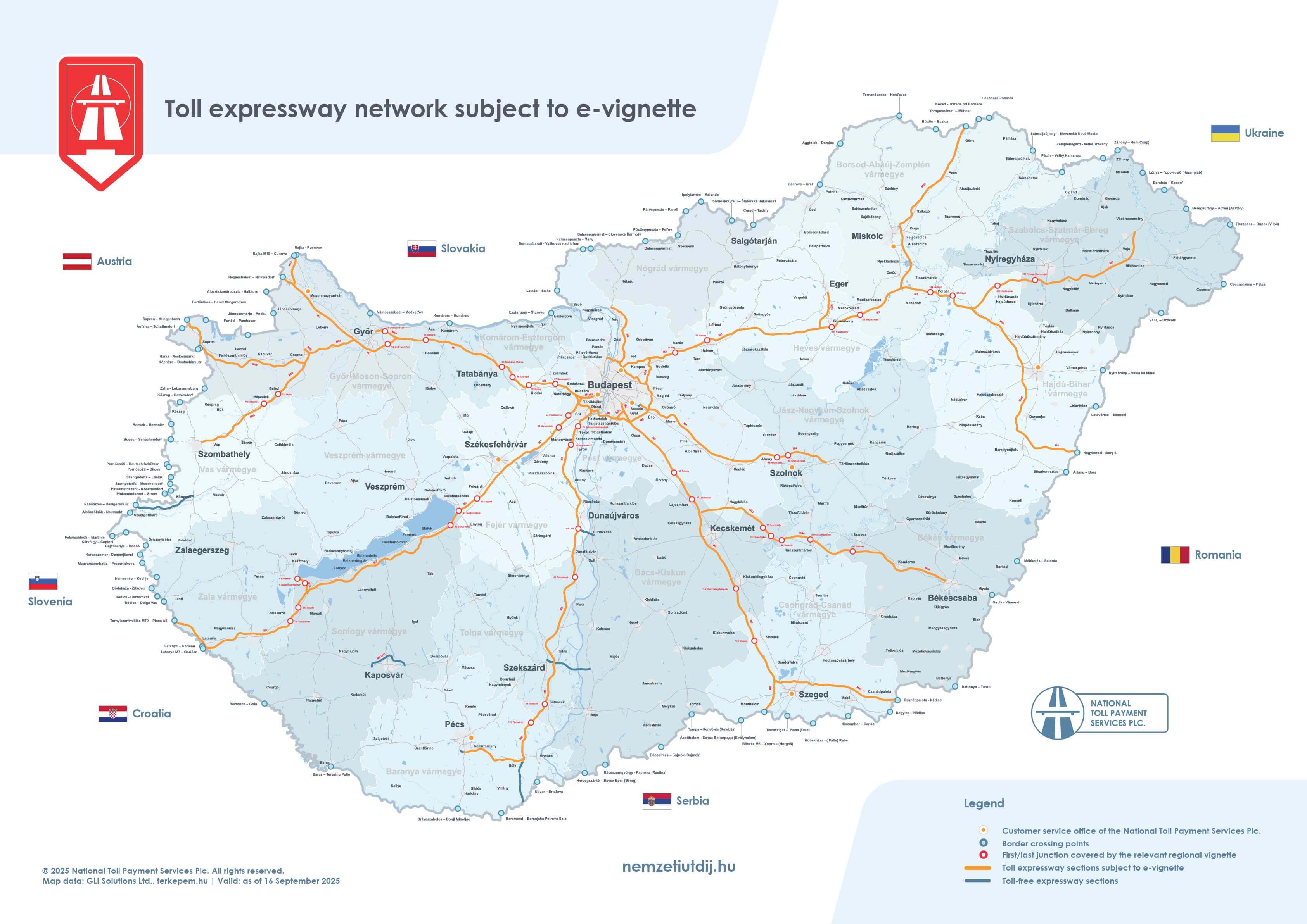 Maps of road sections subject to toll payment are available on the website of Nemzeti Útdíjfizetési Szolgáltató Zrt. at http://www.nemzetiutdij.hu/articles/article/uthalozat